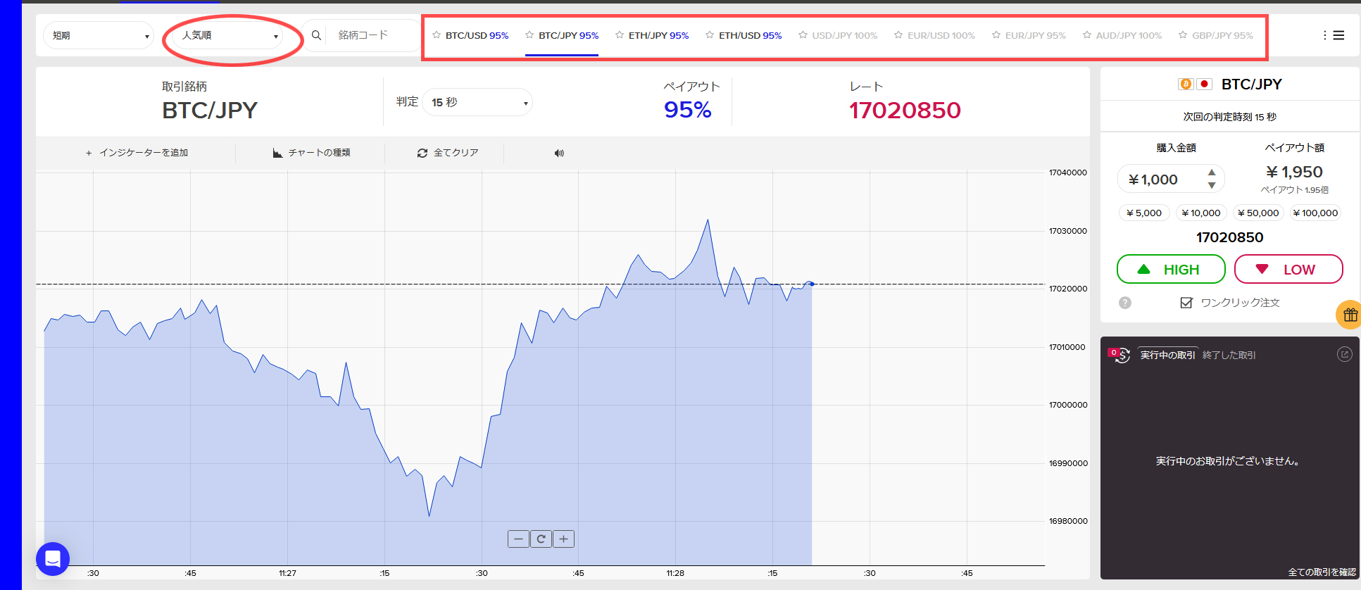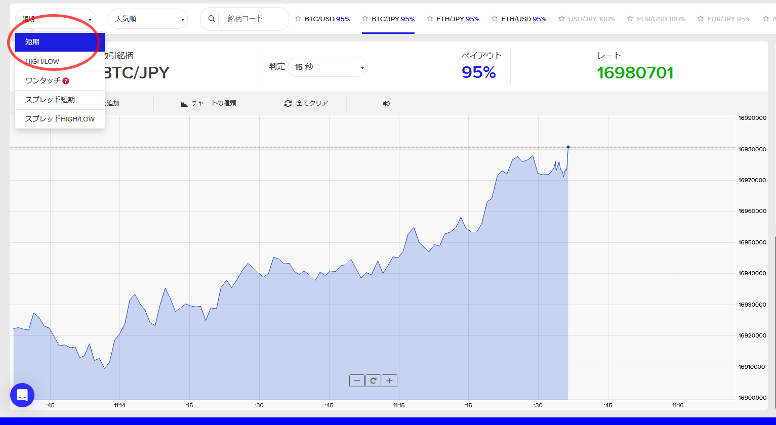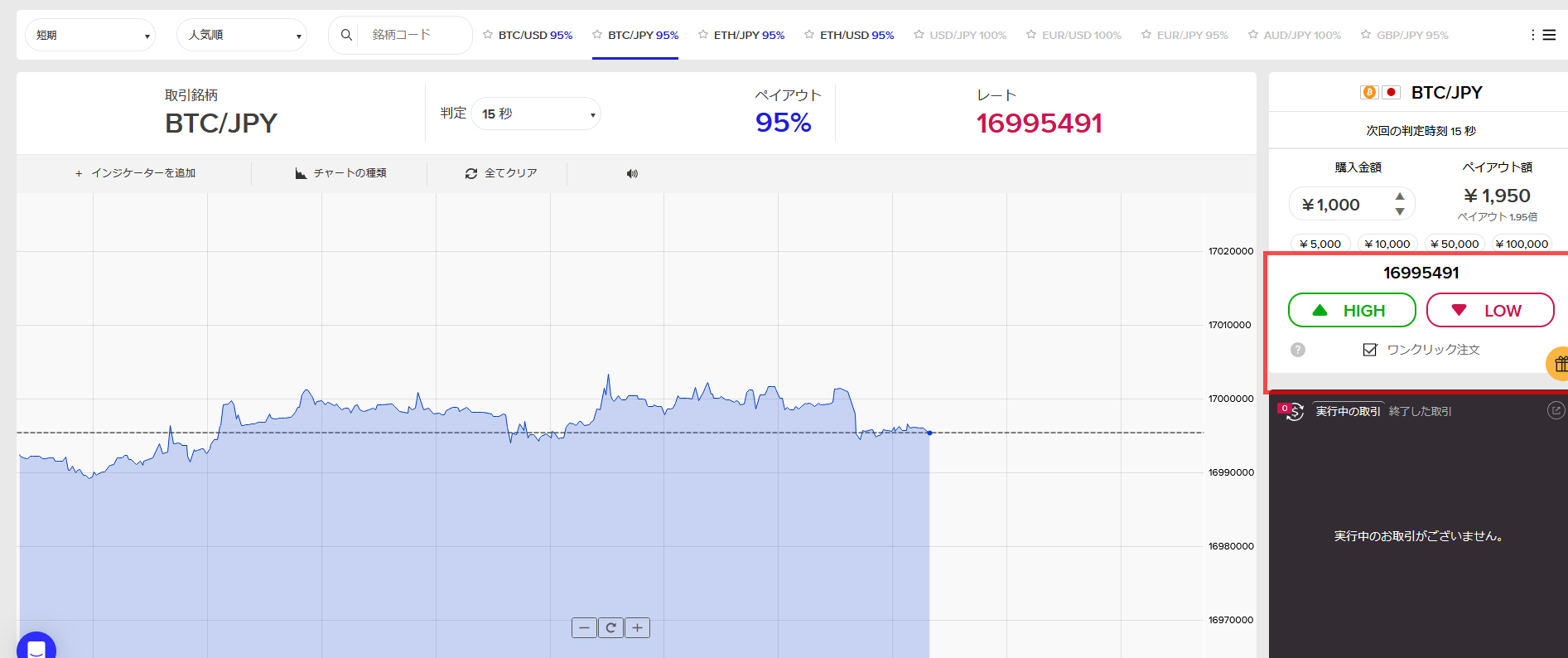 上記の「High」または「LOW」より実際のエントリーが行えます
