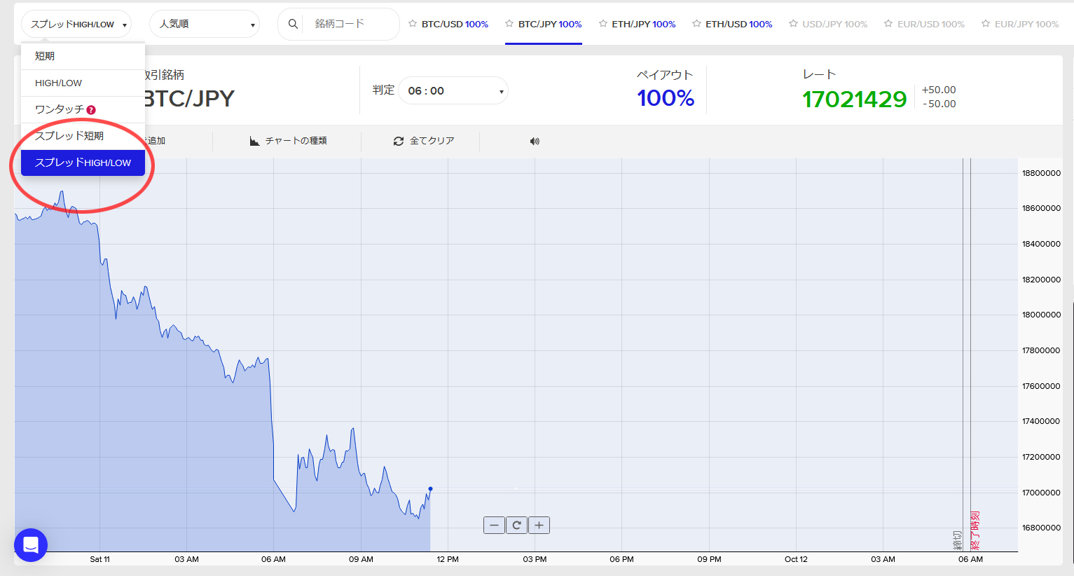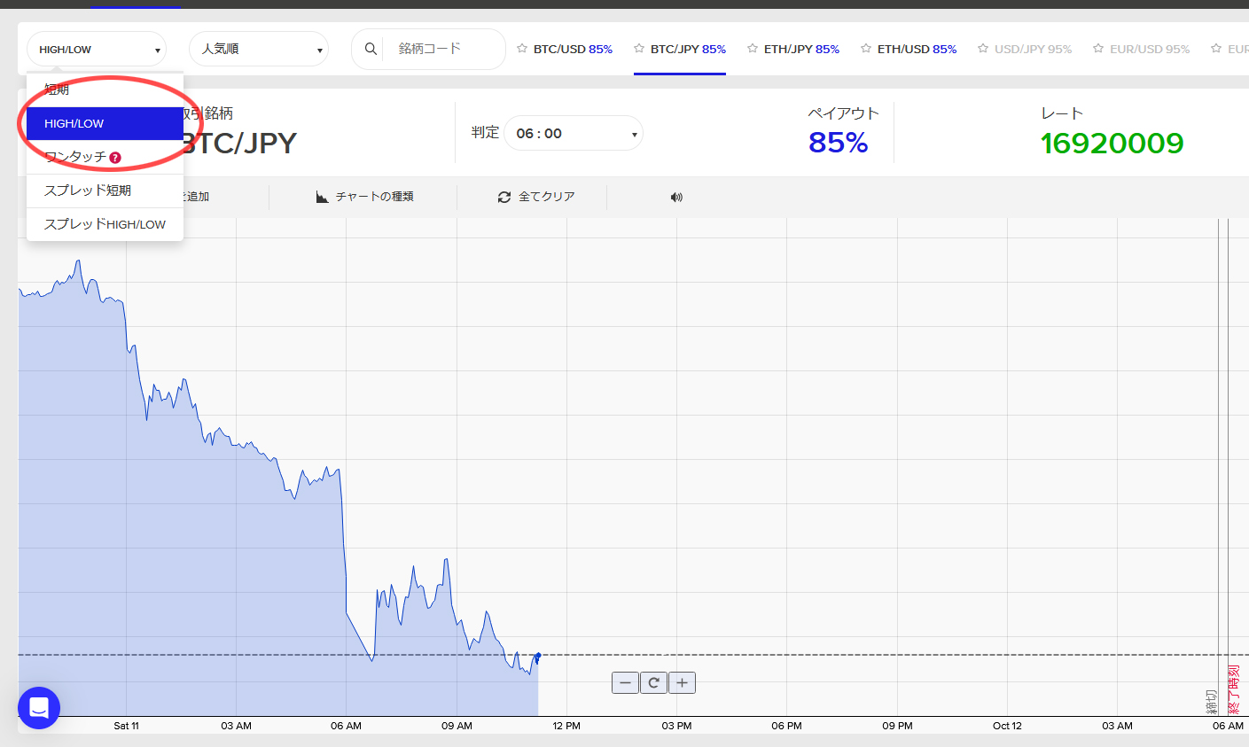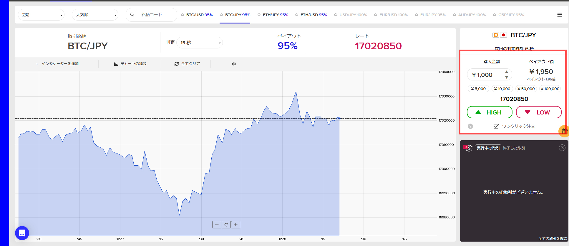 上記の「High」または「LOW」より実際のエントリーが行えます