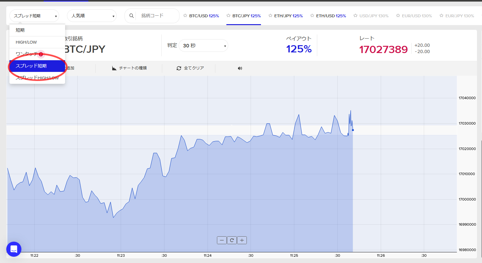 エントリーから数秒で判定時刻勝敗も付く上、配当も高めと