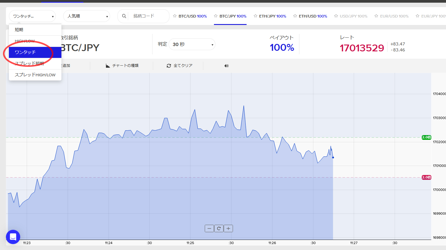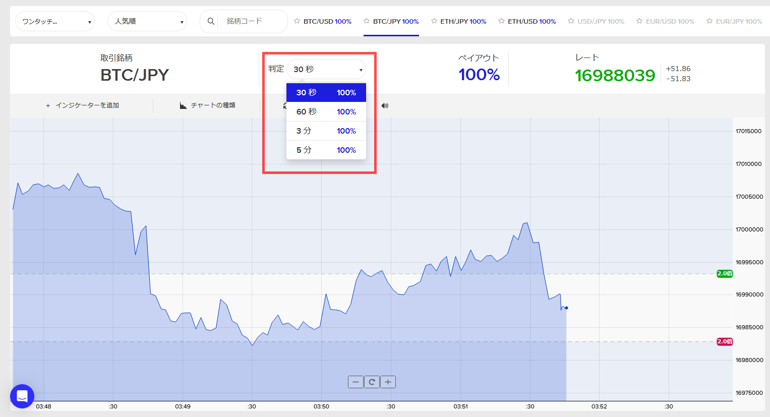配当レートは一様にして、Highlowよりも高額に設定されています。